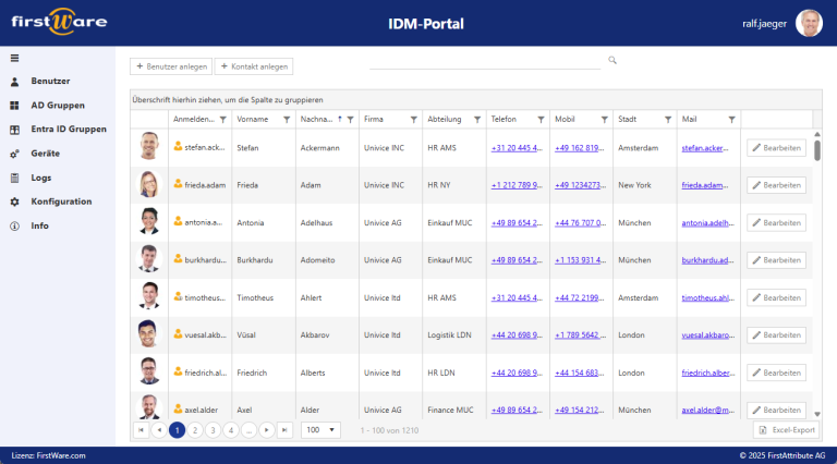 Hier kommt das FirstWare-IDM-Portal ins Spiel. Das Portal ist ein vollumfängliches Identity & Access Management-System (IAM), das speziell für Microsoft-Umgebungen entwickelt wurde. Es hilft Unternehmen dabei, User, Berechtigungen und Lizenzvergaben zentral, automatisiert und sicher zu verwalten und Microsoft-Lizenzkosten zu senken.