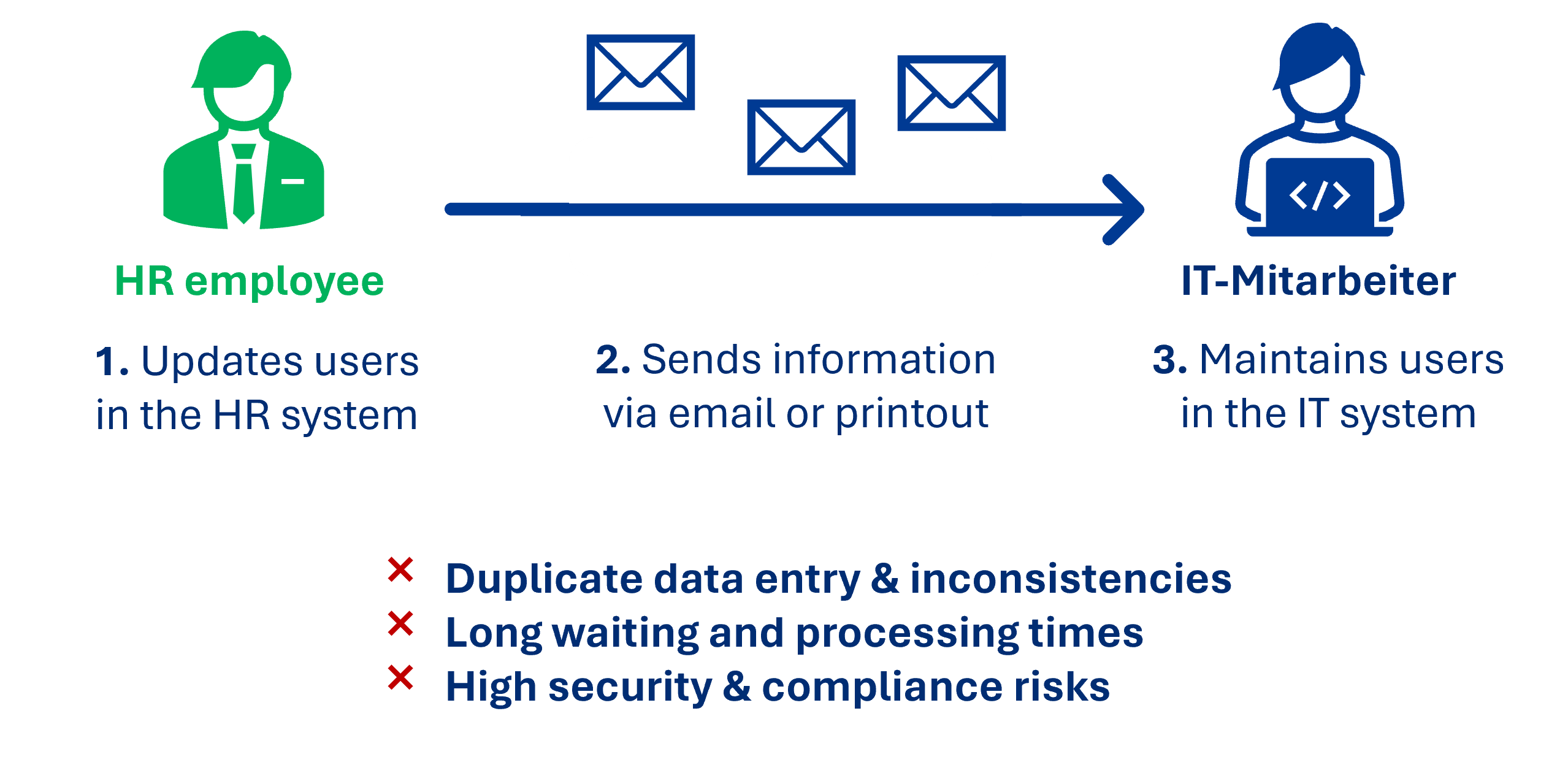 This classic media break (HR system → email → IT → directory) brought risks and missed opportunities: