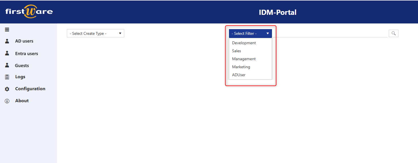 With the release of IDM-Portal 5.3, the user interface has been completely modernized and made more user-friendly. The new search function allows you to find all objects directly without navigating through multiple menus—whether they are AD users, Entra ID users, or other identity types.