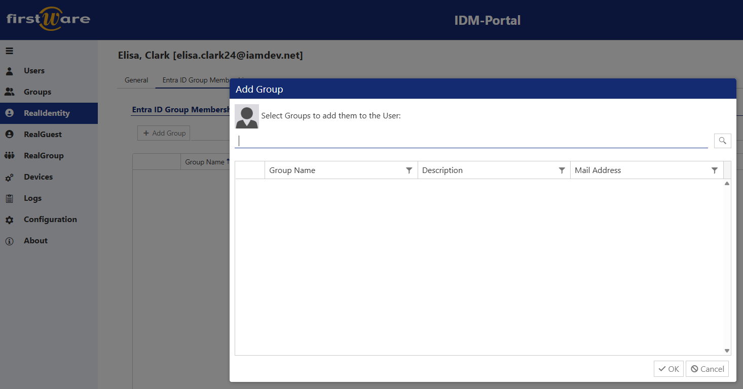 Group management is now easier and more efficient. Users can be found directly via search and added to the appropriate group.
